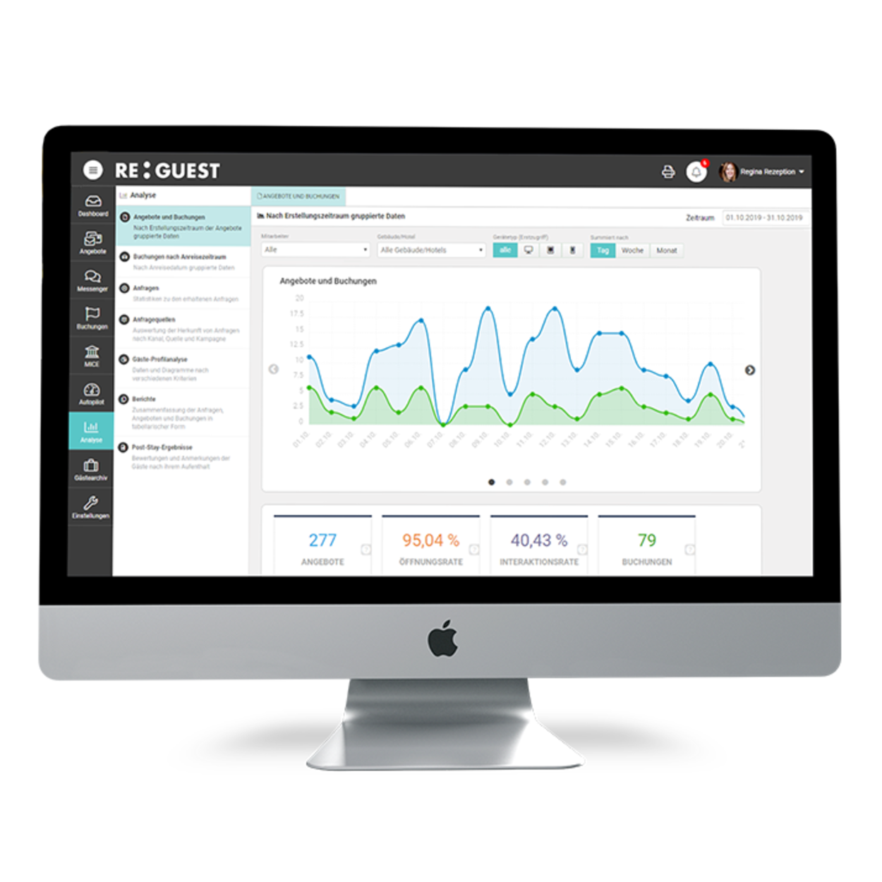 Wer an der Rezeption verkauft am meisten? Welche Angebots-Vorlagen schlagen ein? Welche nicht? Was passiert mit den Newsletters? Warum hat Franz nicht gebucht? Die Wahrheit liest sich aus Zahlen 💸. Und die bekommst du.