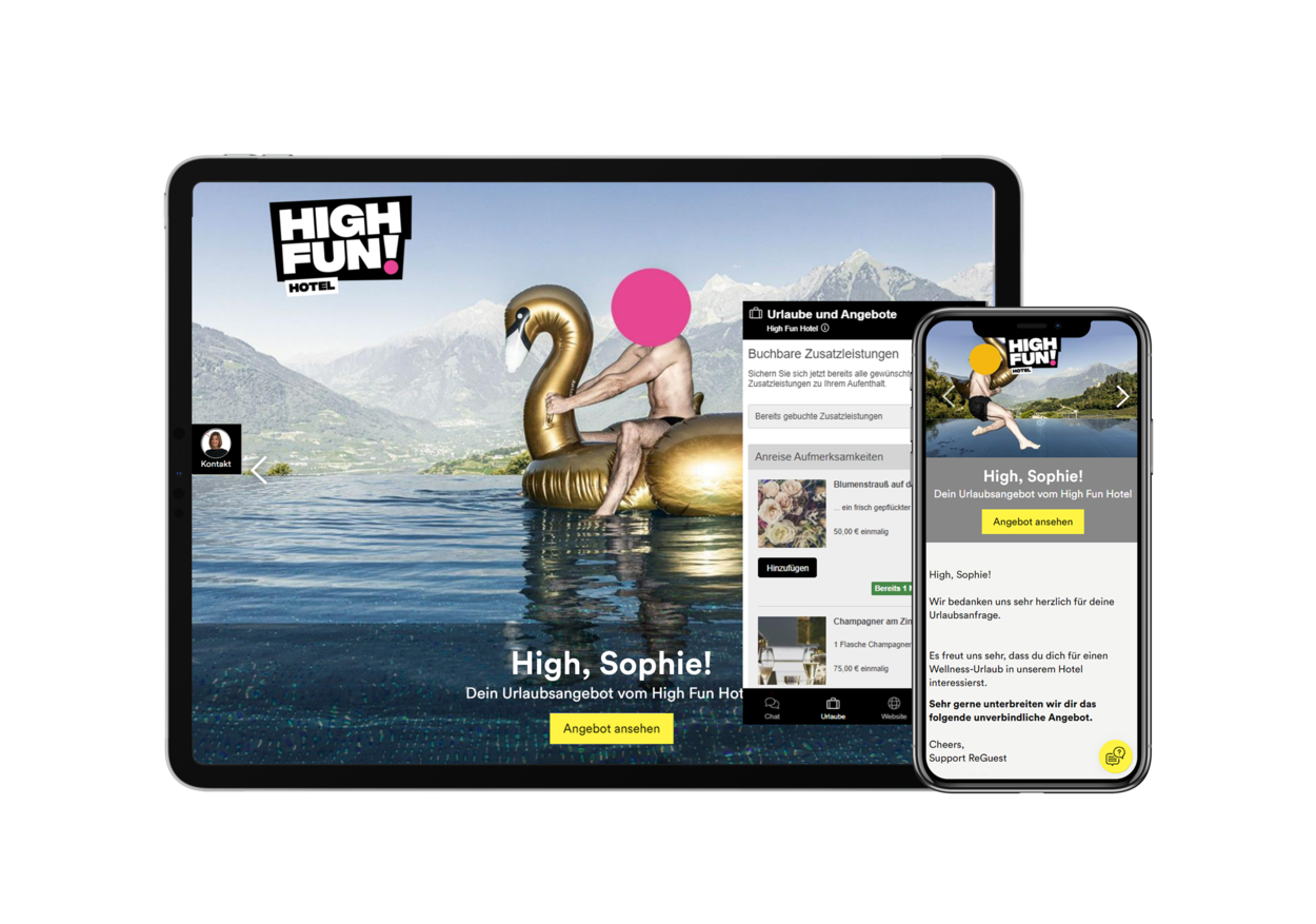 Demo anfragenIch bin die ausgereifteste Verkaufssoftware für Hotels, die die direkten Buchungen 💸 deiner Zimmer und Zusatzleistungen in jeder Phase der Guest Journey steigert. Gezielt, personalisiert und automatisch. Das kann nur ich.